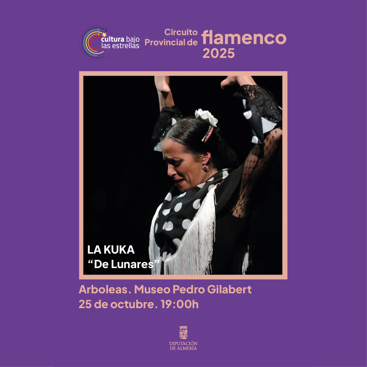Es un espectáculo lleno de sentimiento y flamencura, respetando y apostando siempre por el flamenco tradicional, sin fusionar. La Kuka, bailaora almeriense, es empaque, solera, pellizco y tronío, en la figura de una mujer que se deja la piel en escena a golpe de tacón, transmitiendo pasión y elegancia en cada movimiento.